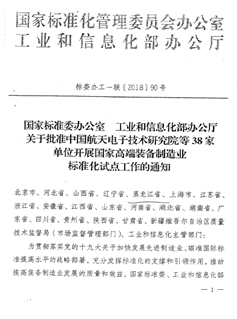 國家標(biāo)準(zhǔn)委及工信部批復(fù)我公司開展國家高端裝備制造業(yè)標(biāo)準(zhǔn)化試點(diǎn)工作